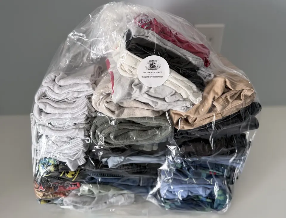 Clean garments are returned in protective packaging, keeping your freshly folded items completely safe from the elements.